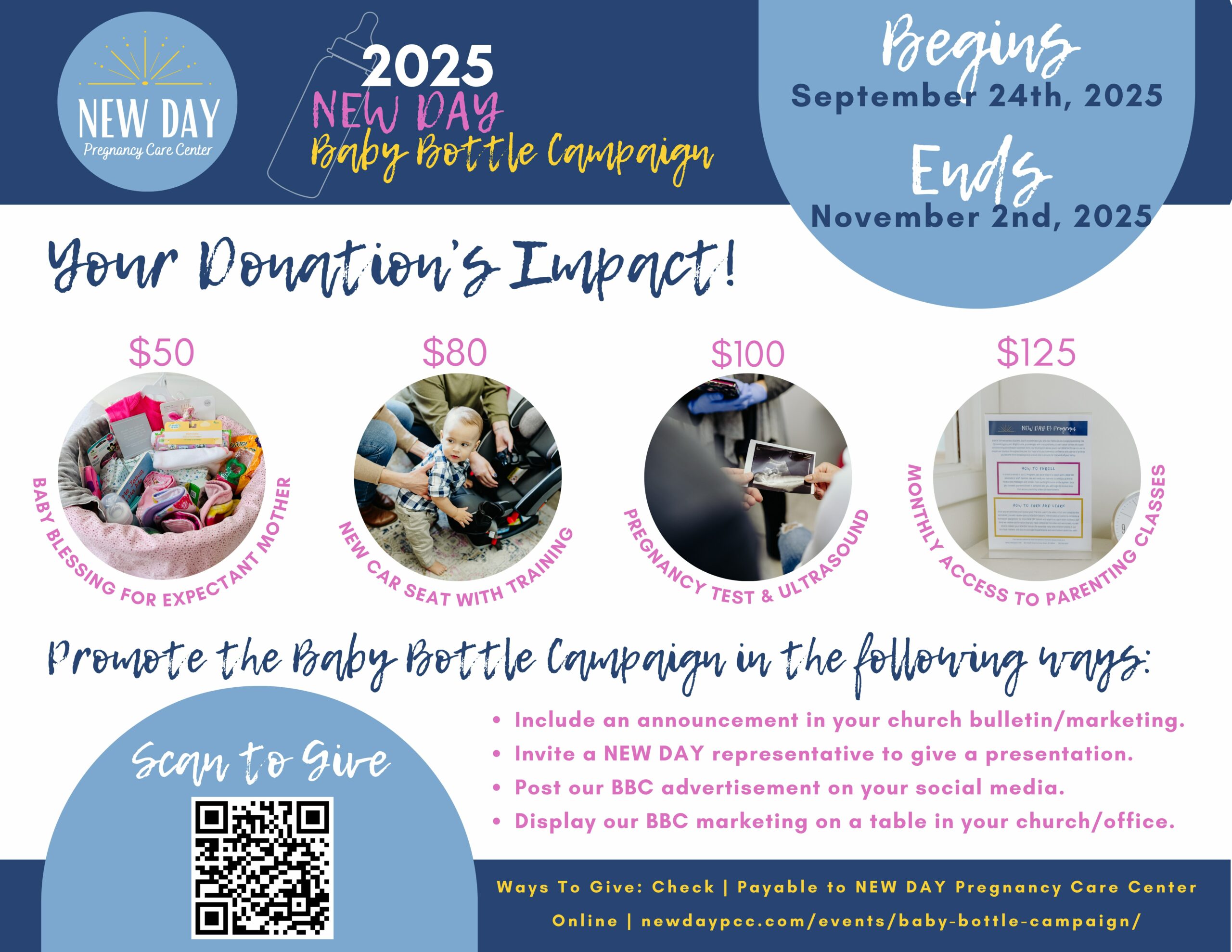 Your donation allows us to continue serving women, children & families in our community with free & confidential medical, educational & support services to those facing unplanned pregnancies as well as to those navigating parenthood.
